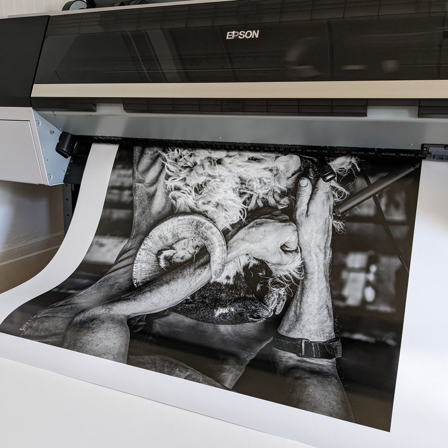 We offer fully archival inkjet printing on the Epson SureColor P8000 printer. The Epson Ultrachrome ink system produces beautiful, high quality inkjet prints that have up to 200-year archival ratings for full color images. Prints can be up to 44 inches wide and 529 inches long.